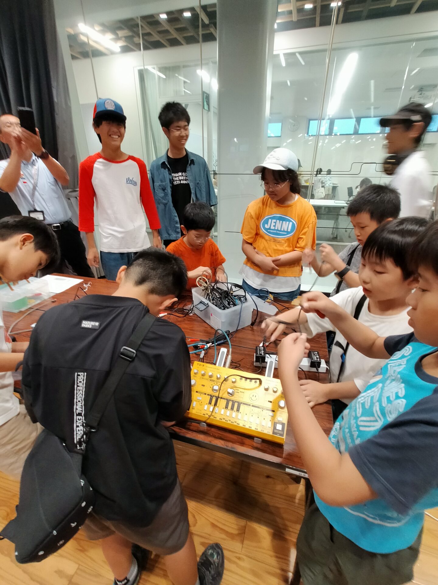 特に嬉しかったのは、前回の配線ワークショップにも参加してくれた子が、今回も来てくれたこと。前回で仲良くなったDJ丸岡をちょっとイジったりする関係性になっていて、微笑ましい光景でした。